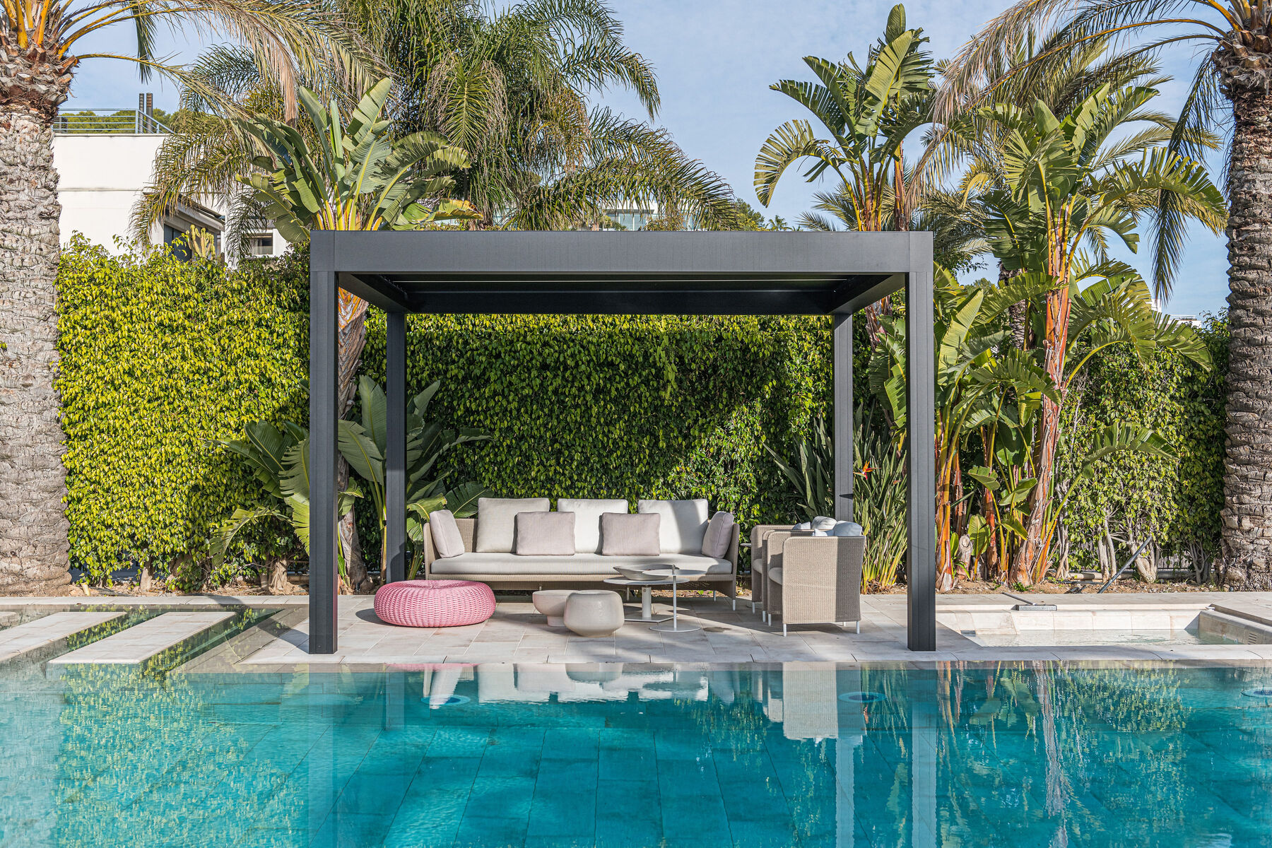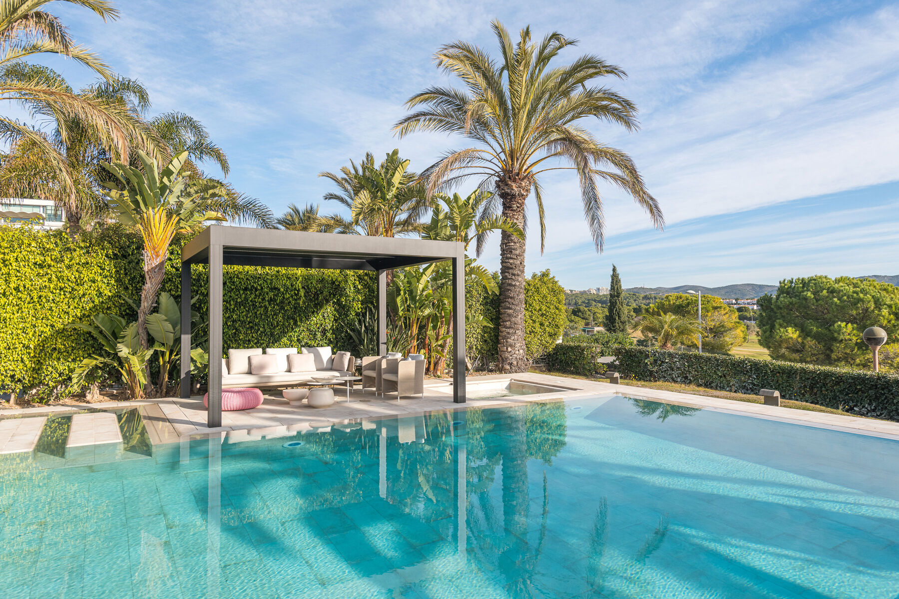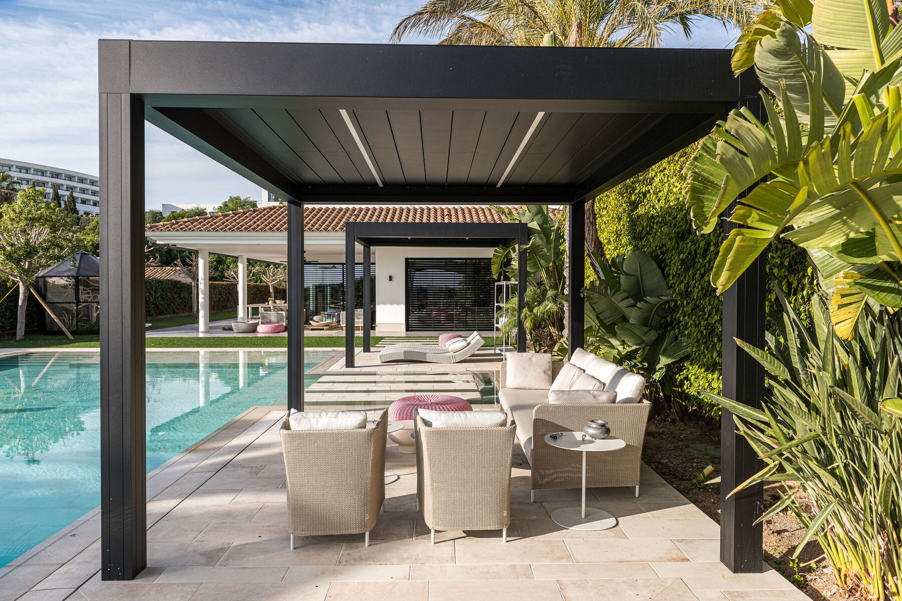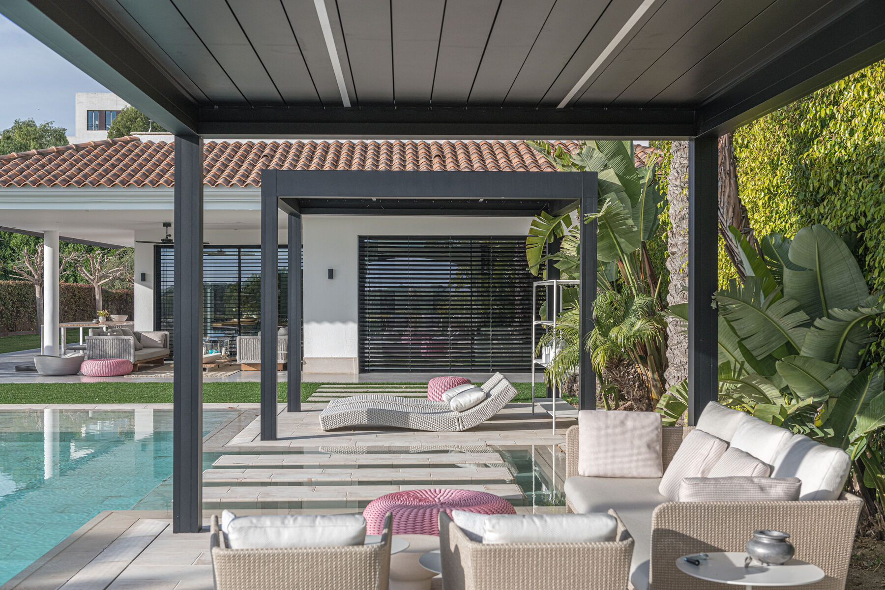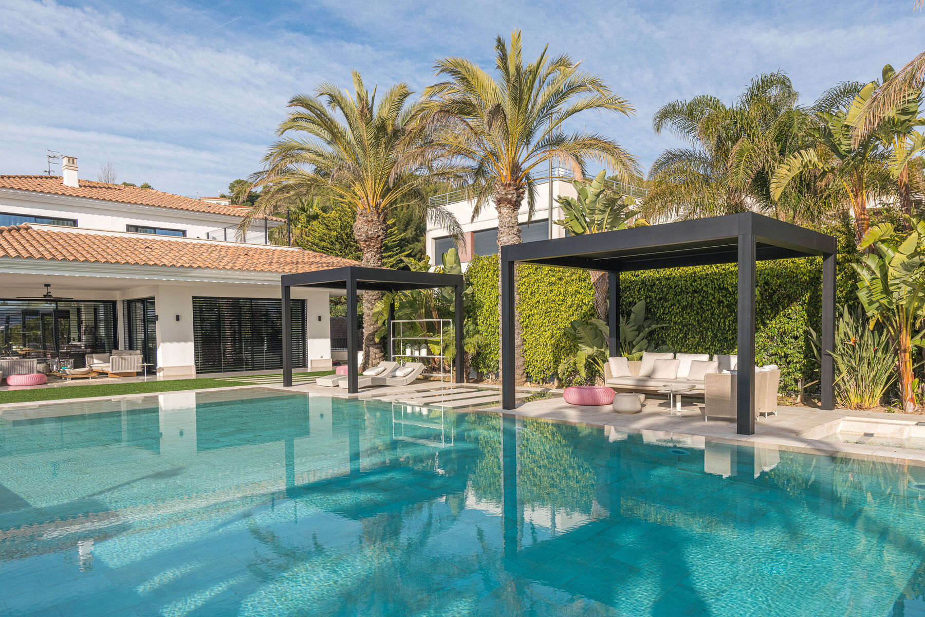 Us presentem un espai exterior on la barreja del luxe i l’elegància s’uneixen per crear un entorn idíl·lic, perfecte per al relax i la diversió. la qualitat excepcional dels elements instal·lats. Des de les sofisticades pèrgoles fins al mobiliari d’alta gamma, cada detall ha estat seleccionat per garantir no només confort, sinó també un toc de glamur que transforma aquest lloc en un veritable oasi. convida a gaudir de la bellesa i la serenitat que només un espai tan especial pot oferir. ¿ Vols dissenyar el teu nou projecte amb l’encant i la sofisticació que sempre has desitjat?